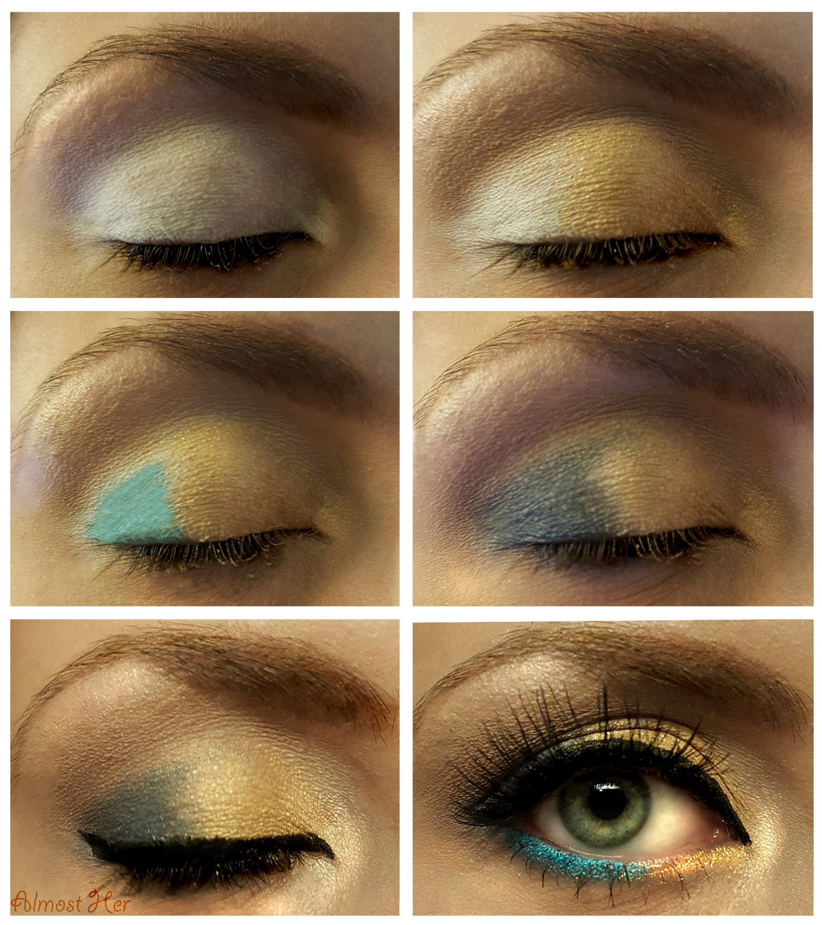 9. On your lower lash line apple a blue eyeliner (I used NYX Azure) and a glitter gold liner for an added pop of sparkle and color!