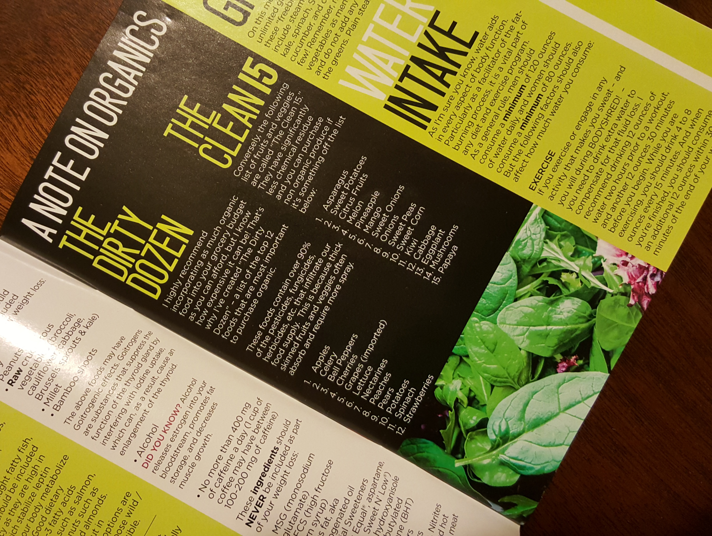 This program comes with a meal plan for the full 60 days and it gives you advice to follow while you are on the plan. It starts off by telling you what foods to eat and what foods to stay away from. It also includes the “Dirty Dozen” list and the “Clean 15” list for when it comes to organic foods. On this plan you can have unlimited green veggies like steamed broccoli, asparagus, spinach, zucchini, etc. as so long that it isn’t raw and does not have any added salt or butter.